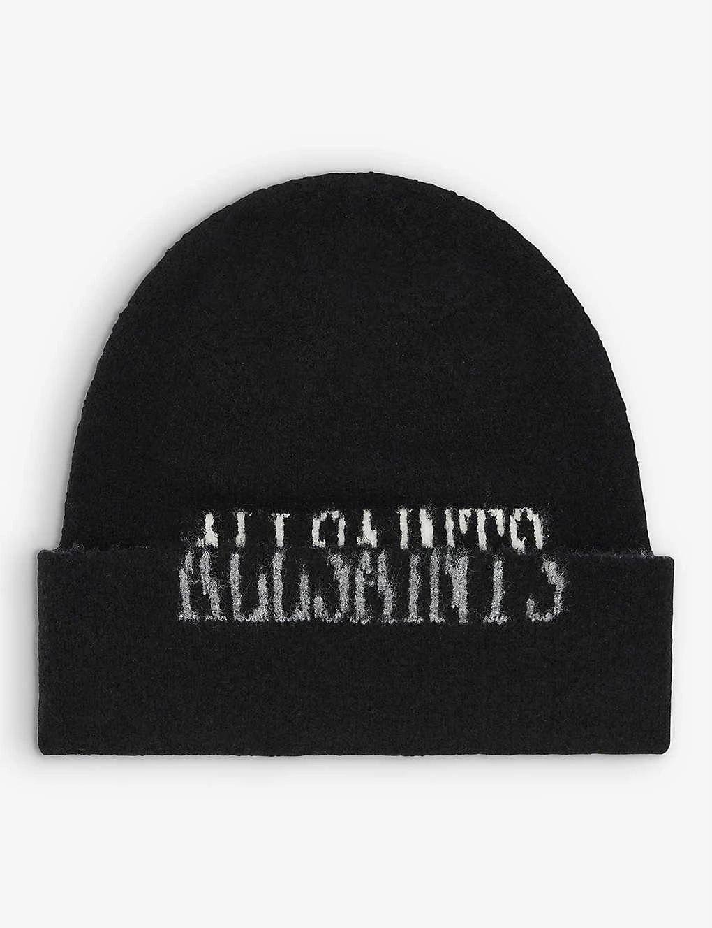 AllSaints State Contrast Logo Knitted Beanie Hat