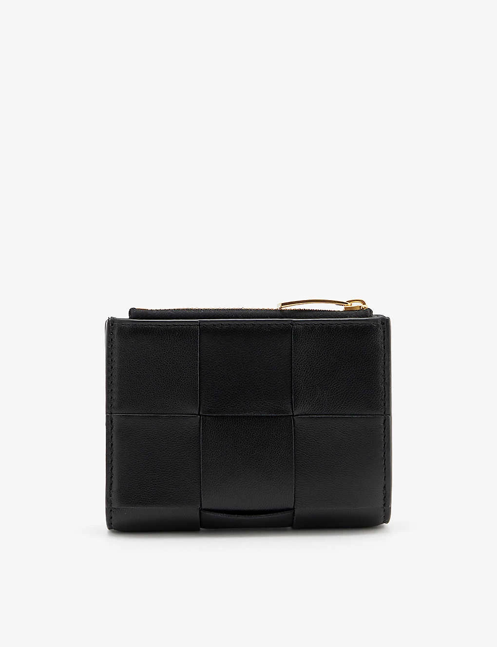 - Gold-toned hardware, all-over maxi double-faced weave, internal slip pocket, eight internal card slots, debossed branding at interior, zipped pocket at back