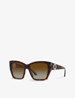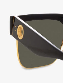 - Gold-toned frame, full rim, contrasting corners, reversible branded detail to the temples, acetate tips
