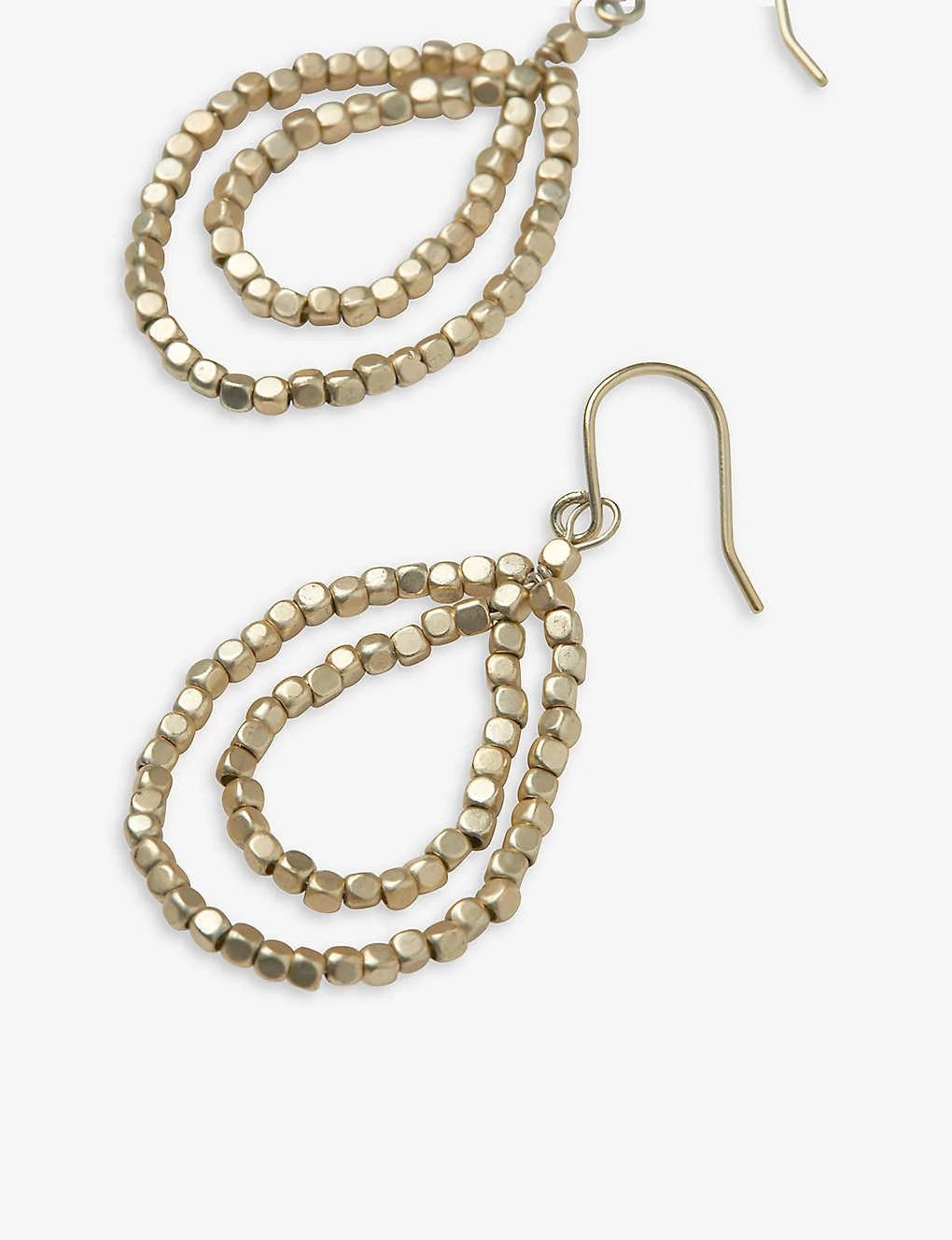 - Double teardrop shape, all-over beaded design, matte finish, gold tone