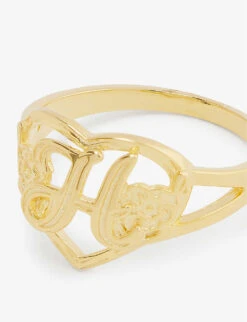 The Cutout Flower Heart Letter H 14ct Yellow Gold-plated Metal Ring