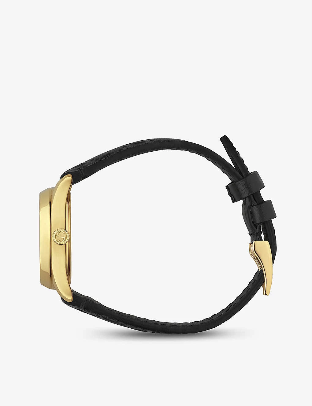 - Gucci PVD-plated yellow-gold and leather quartz watch