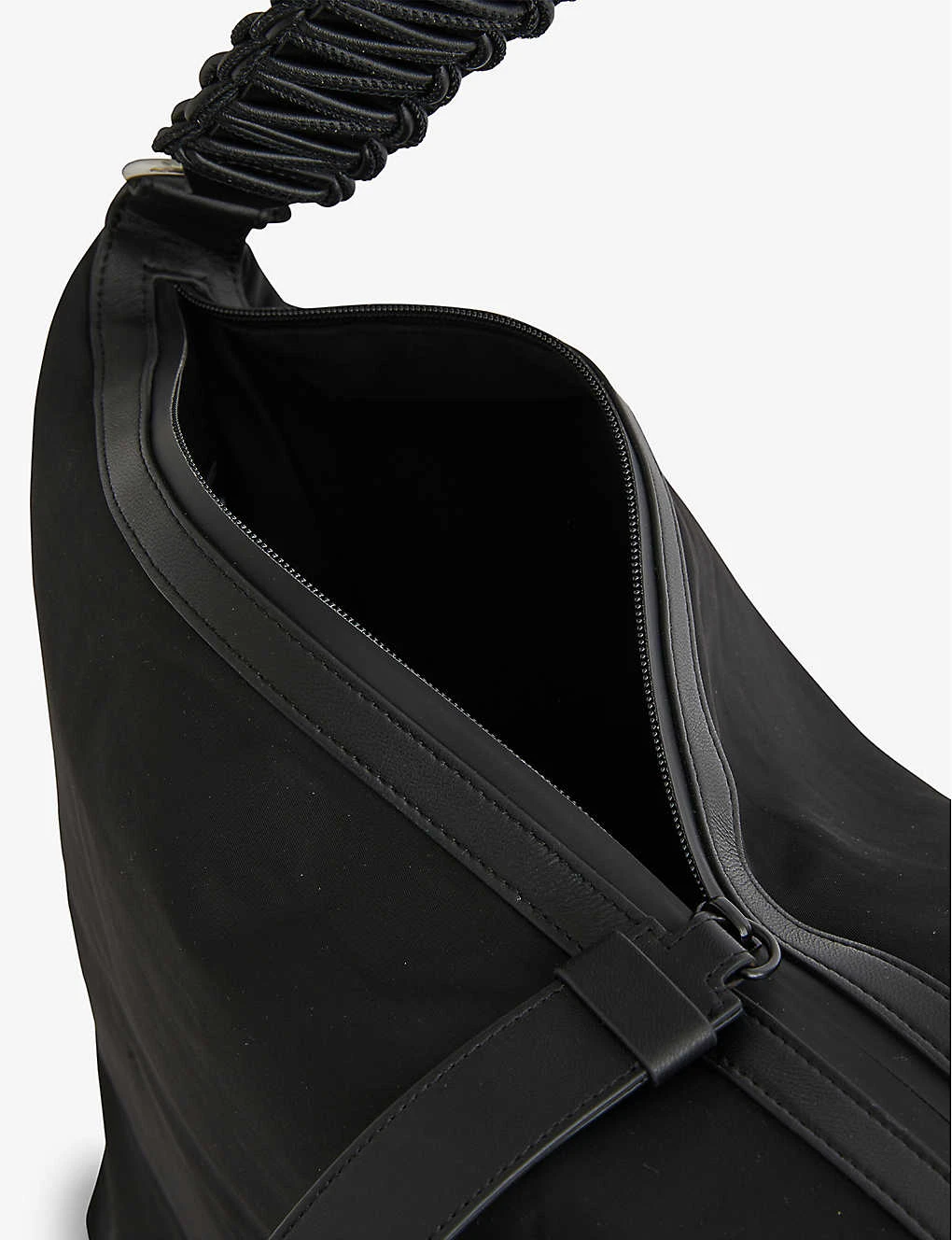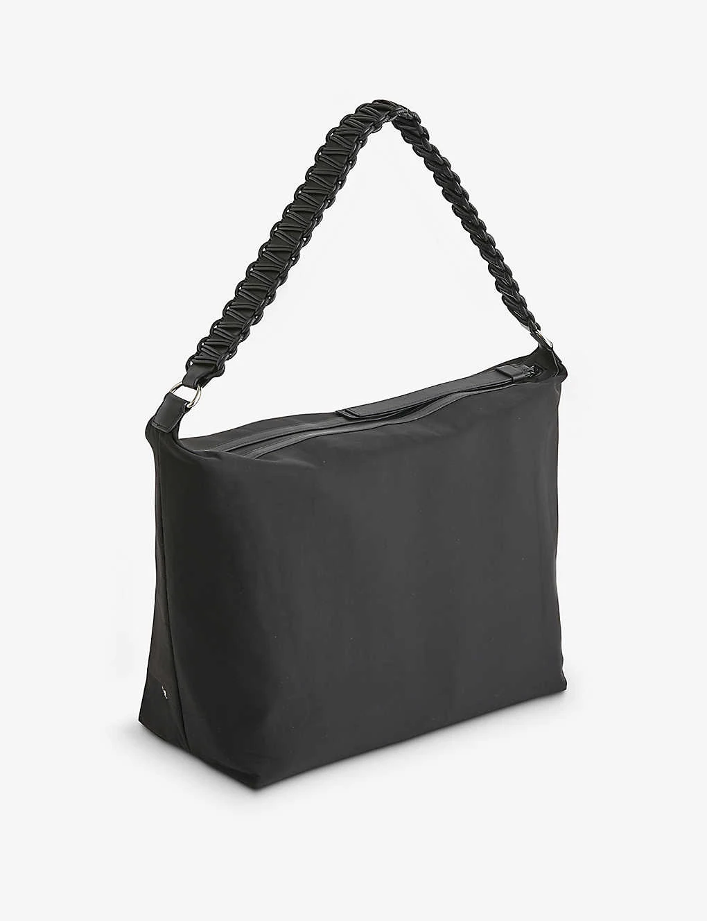 - Soft shape, braided shoulder strap, one main compartment, internal slip pocket, silver-toned hardware