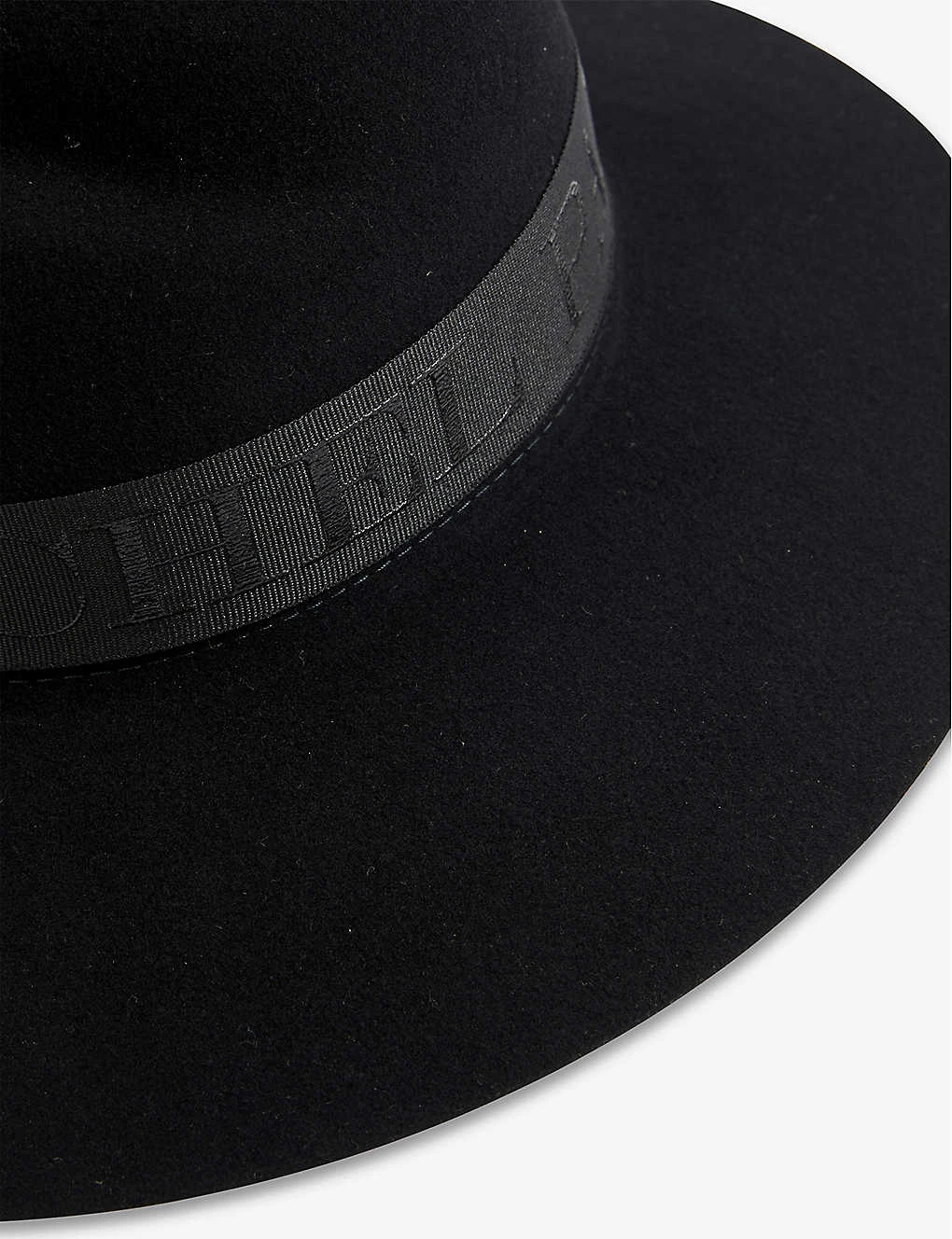 - Dipped crown, bow at side, all-over felt texture, curved brim, interior sweatband, internal brand tab