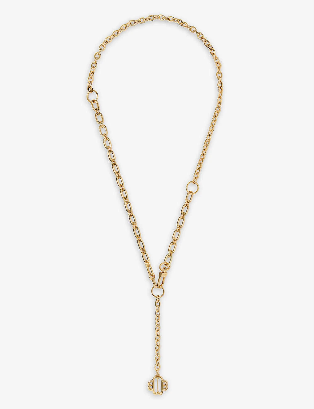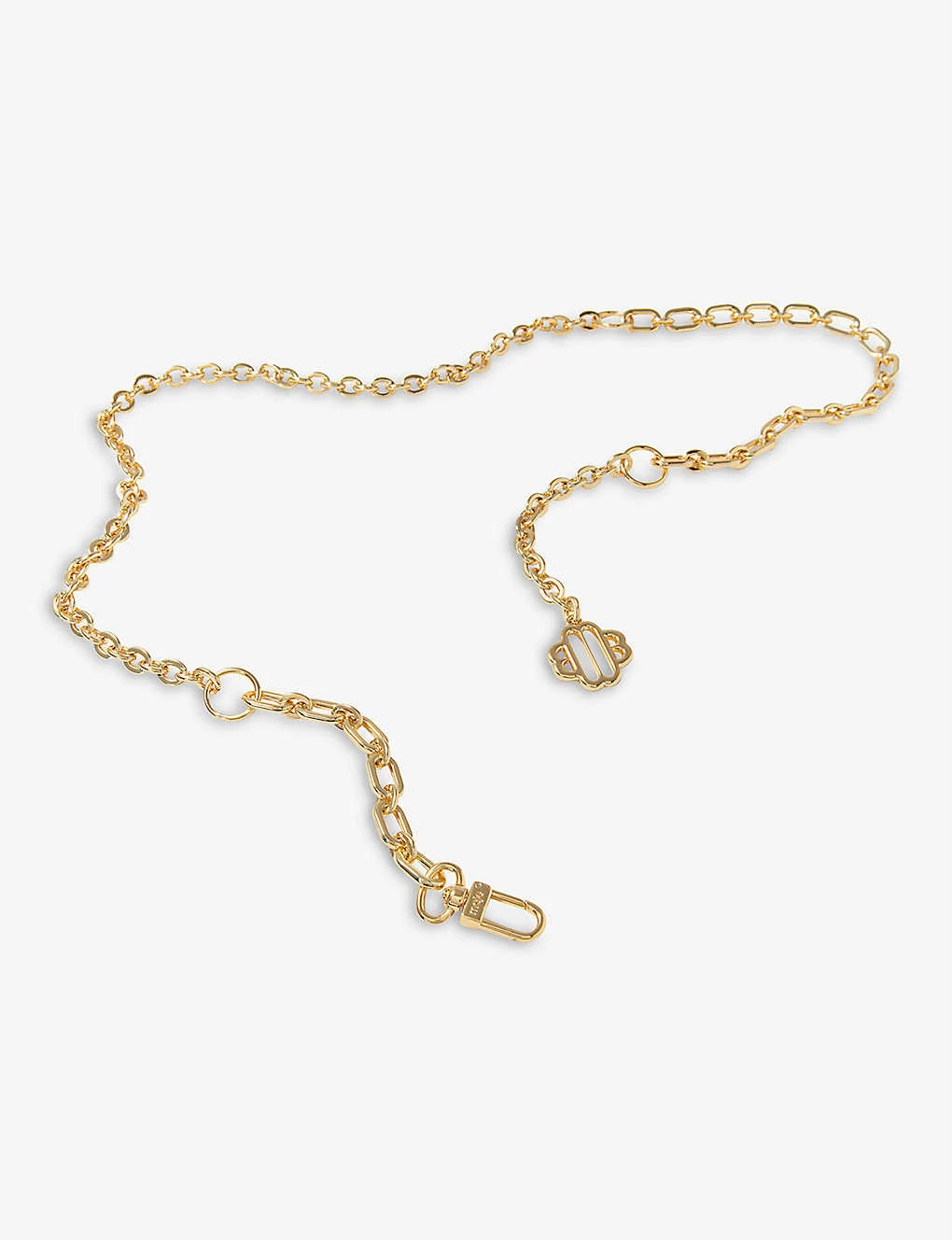 - Gold-tone link chain belt, clover pendant, lobster clasp