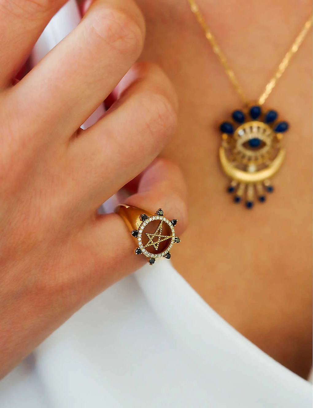 - The Alkemistry x Meher 18ct yellow-gold and 0.36ct white and black diamond ring