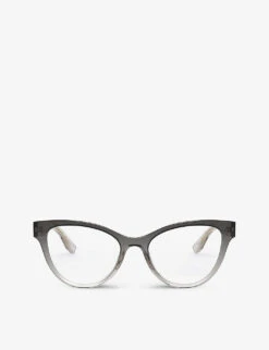 - Cat-eye frames, ombre design, logo engraved at temples, optical lens non-prescriptive