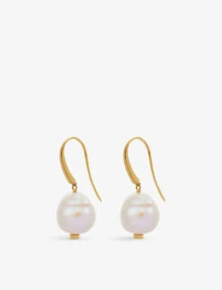- Monica Vinader 18ct yellow gold-plated vermeil sterling silver and pearl earrings