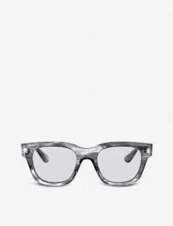 Hand-laid functional pins at front and temple, hand-inlaid logo at the temple tip, tinted lenses
