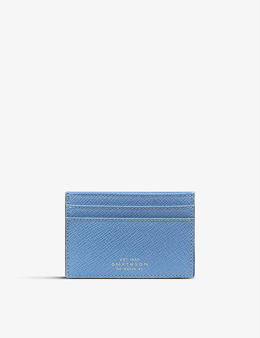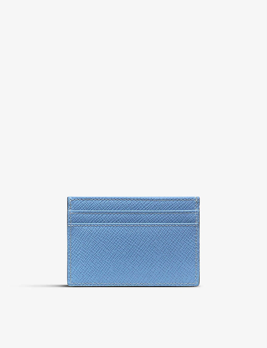 - Crocodile-embossed texture, five card pockets, foil branding to the front