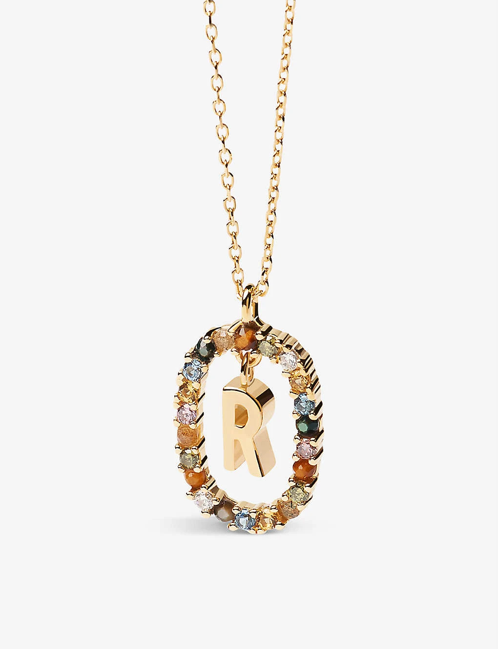 PDPAOLA Initial R 18ct Yellow Gold-plated Sterling-silver And Semi-precious Stones Pendant Necklace