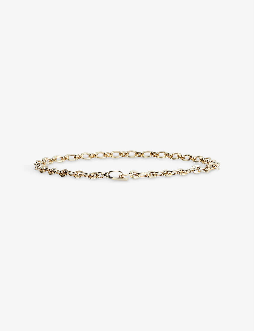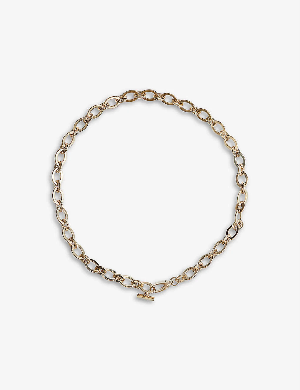 - Chain link construction, gold-tone finish, branded tab