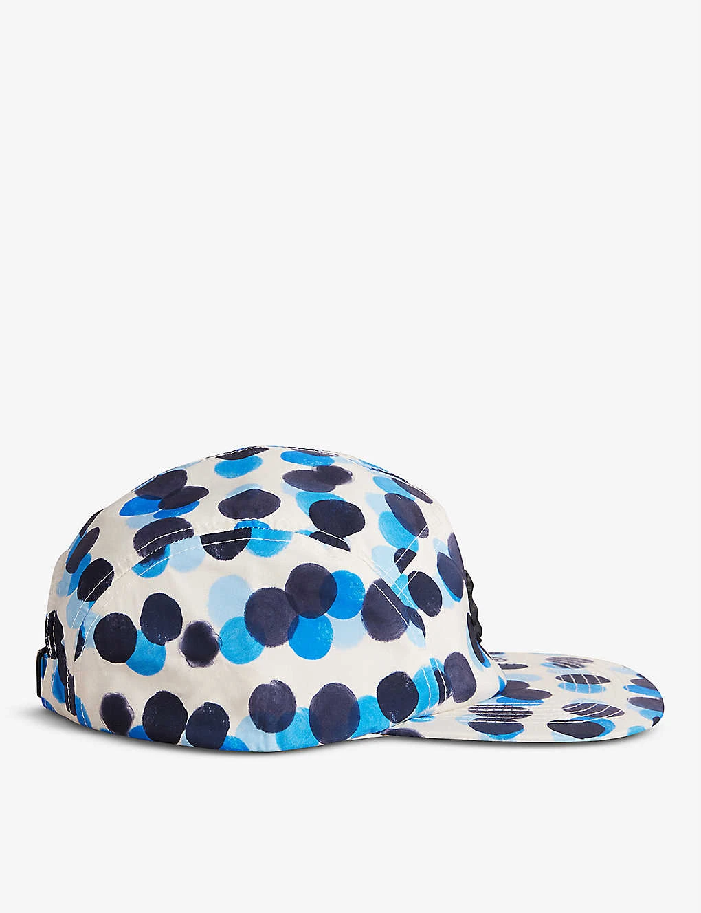 - Flap peak, all-over dot print, panelled construction, contrasting logo patch to the front, adjustable fit