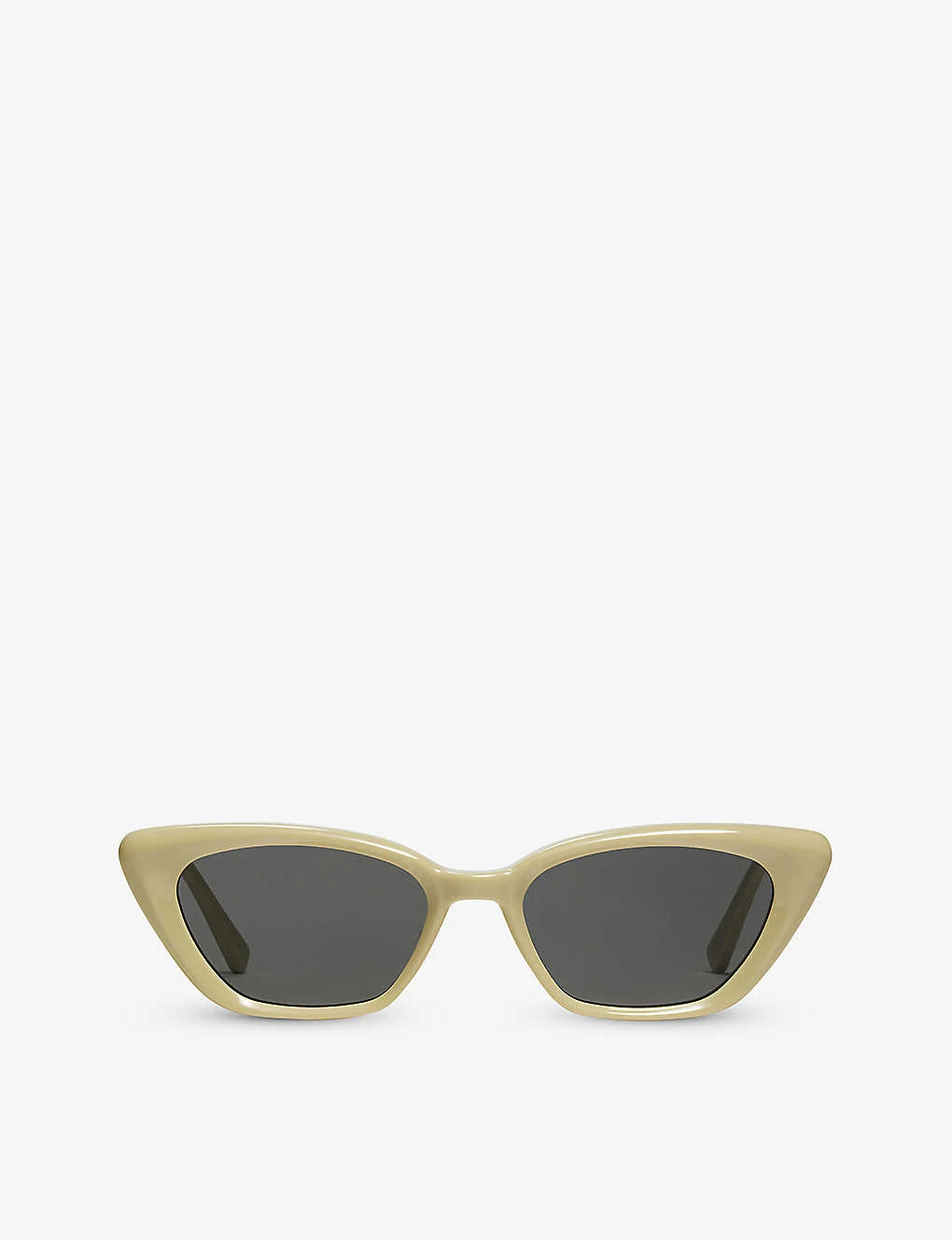 - Tinted lenses, cat-eye frame, branding at the arm, 100% UV protection