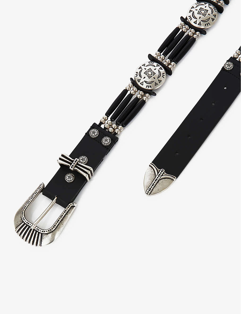 THE KOOPLES Metal-pearl Engraved-disc Leather Belt