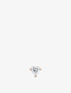 - Heart design, hand-cut zirconia stones, stud back, single earring