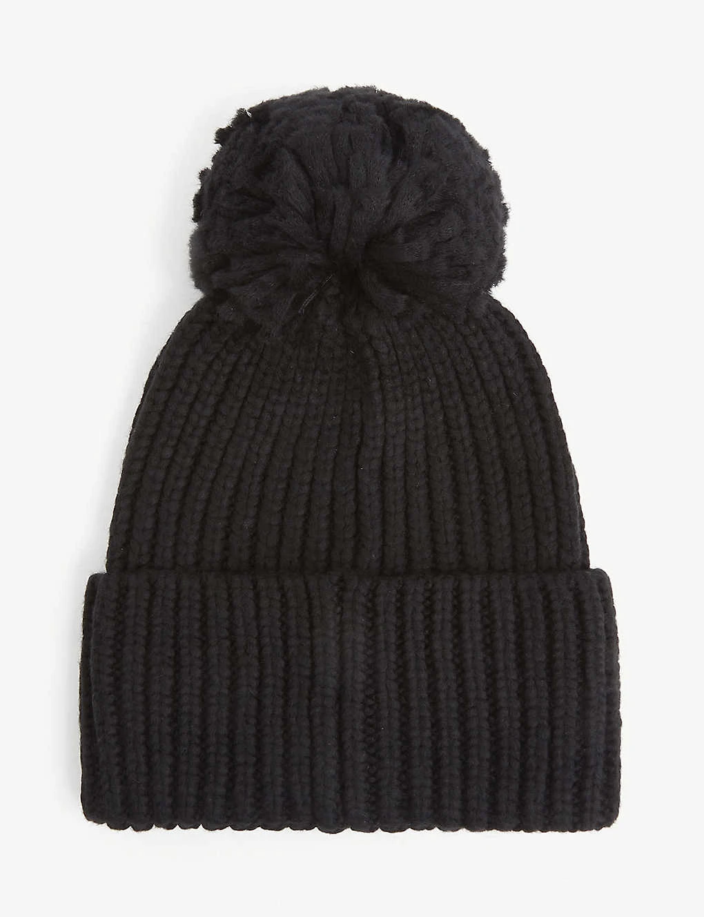 - Folded brim, branded tab at front, pom pom, rib knit