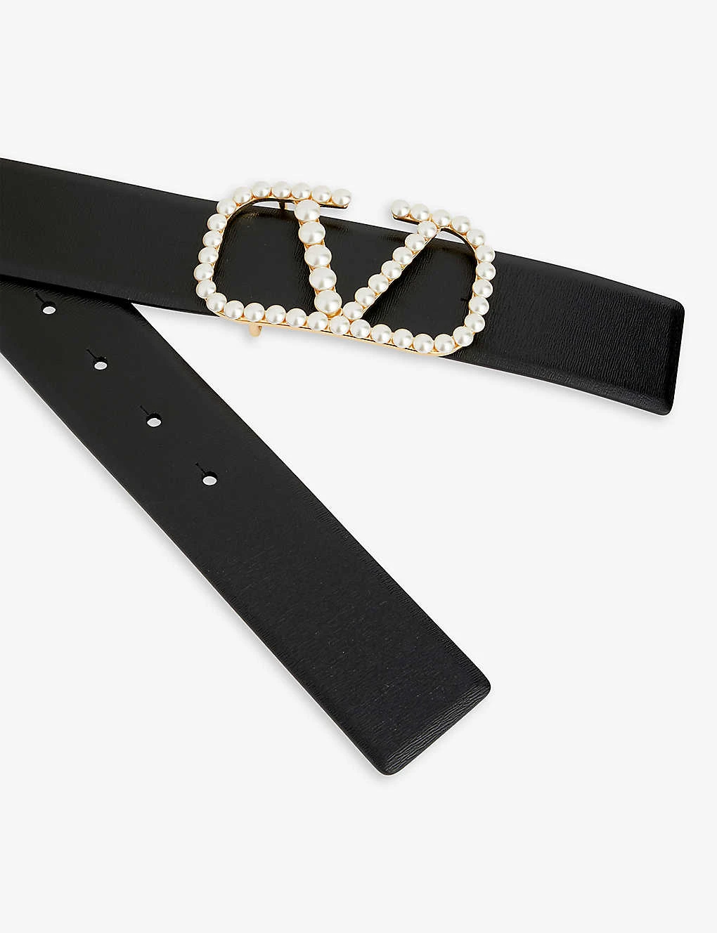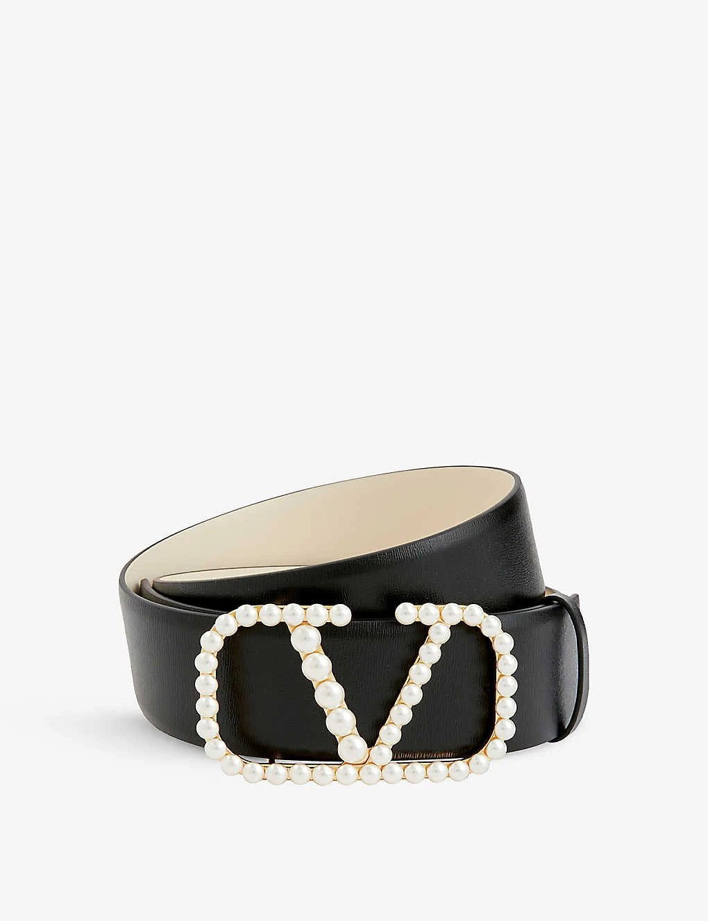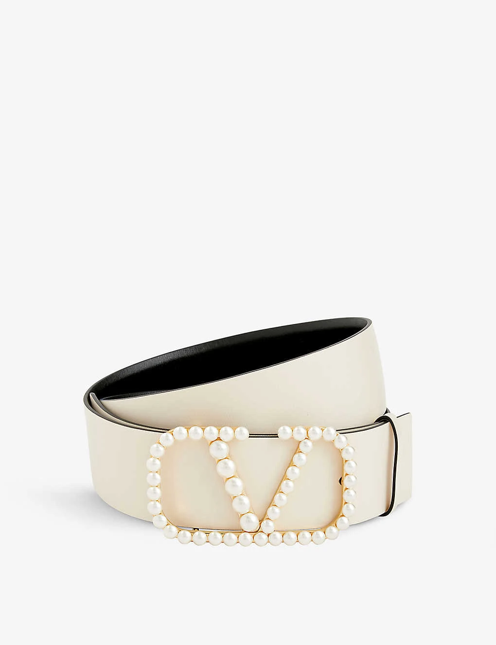 Valentino Garavani V-logo Pearlescent-buckle Leather Belt