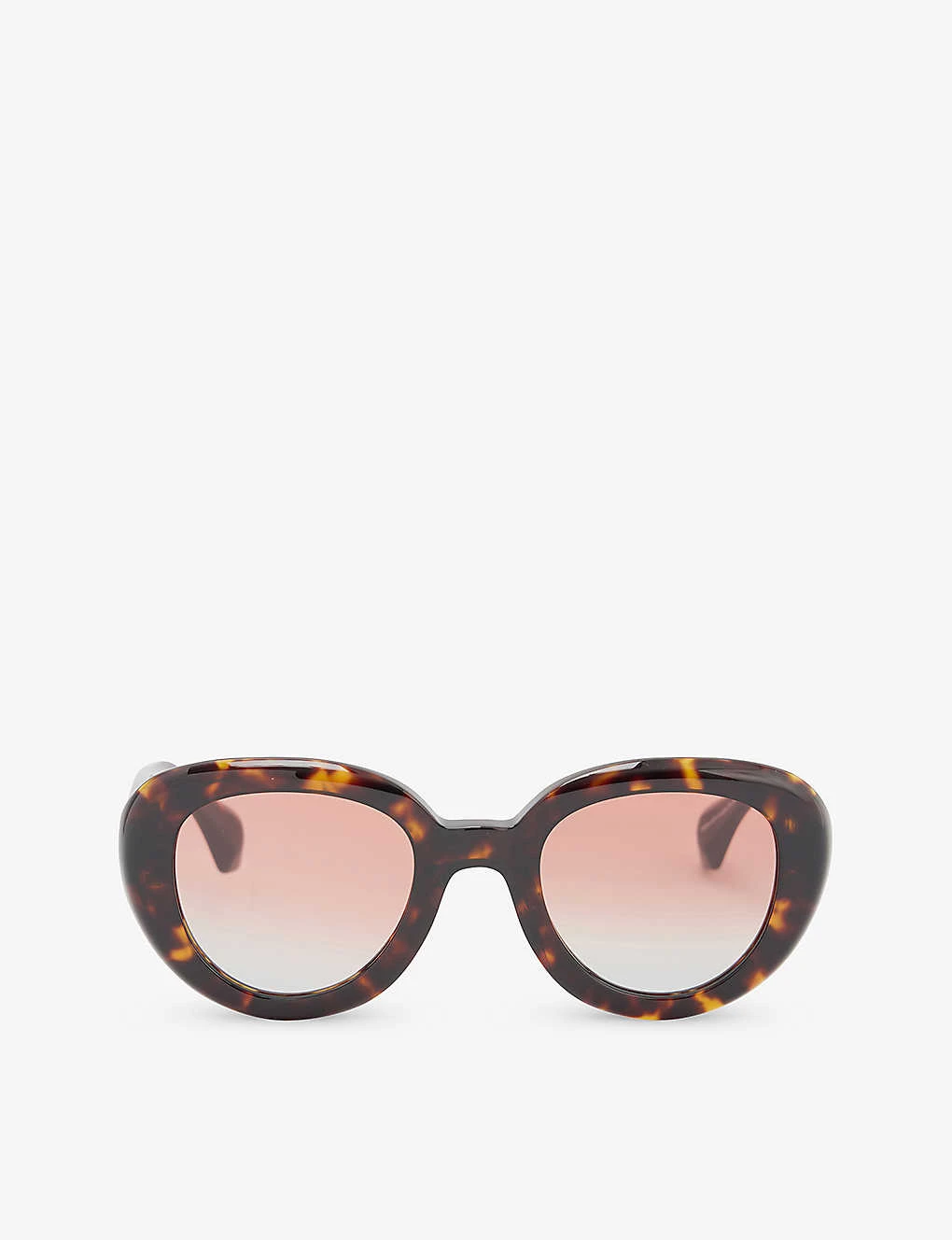 - 100% UV protection, orange gradient lenses, tortoiseshell print, cut-out orbit design plaque at temples, gold-toned plaques, internal brand print