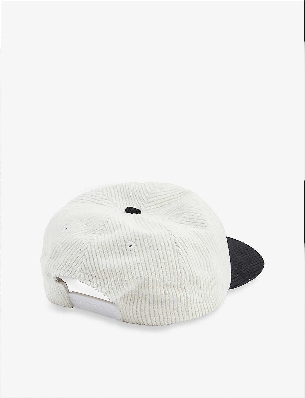 - Curved peak, brand and text embroidery at front, six panels, eyelets embroidery, all over ribbed texture, internal sweatband and brand patch